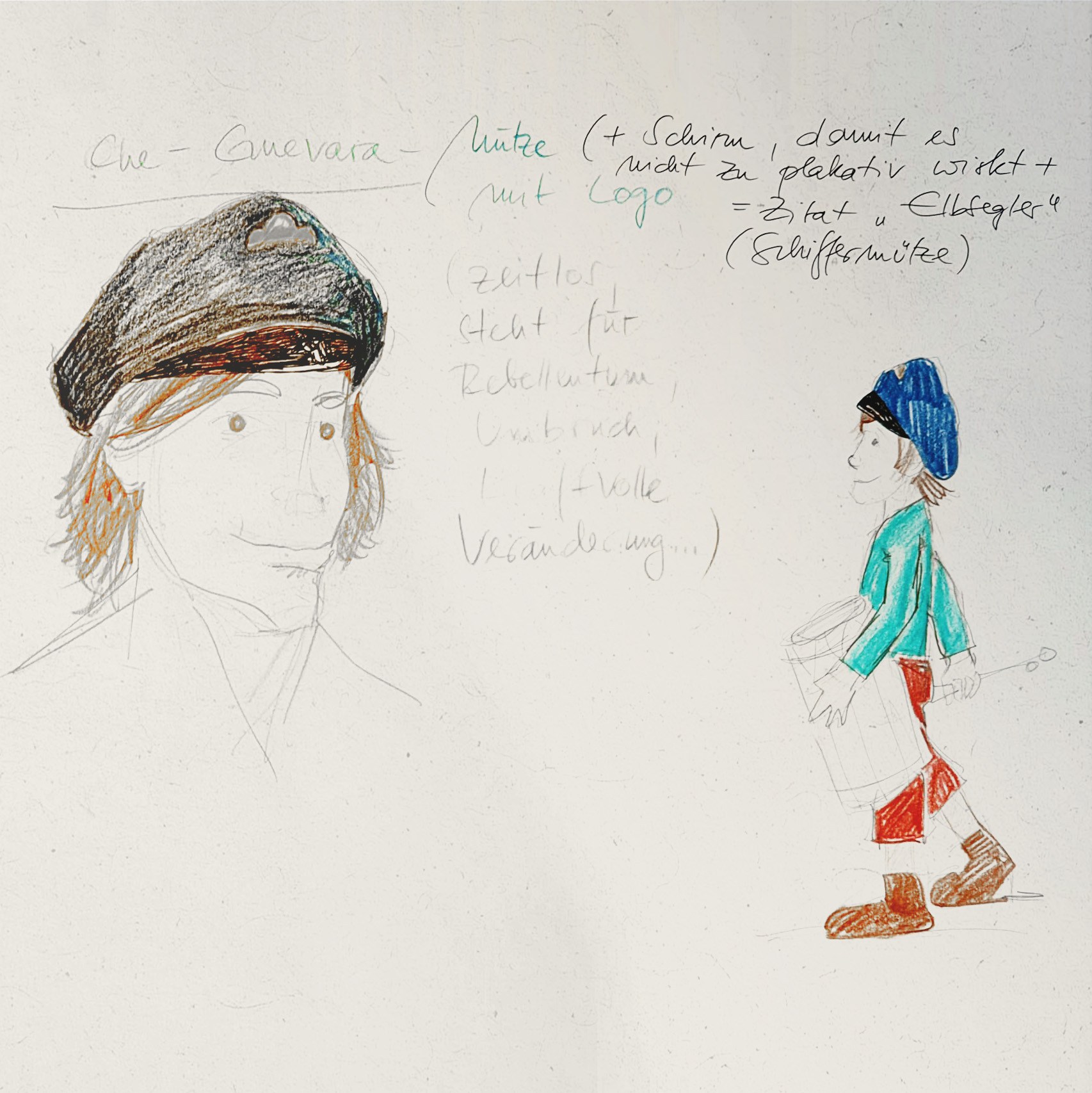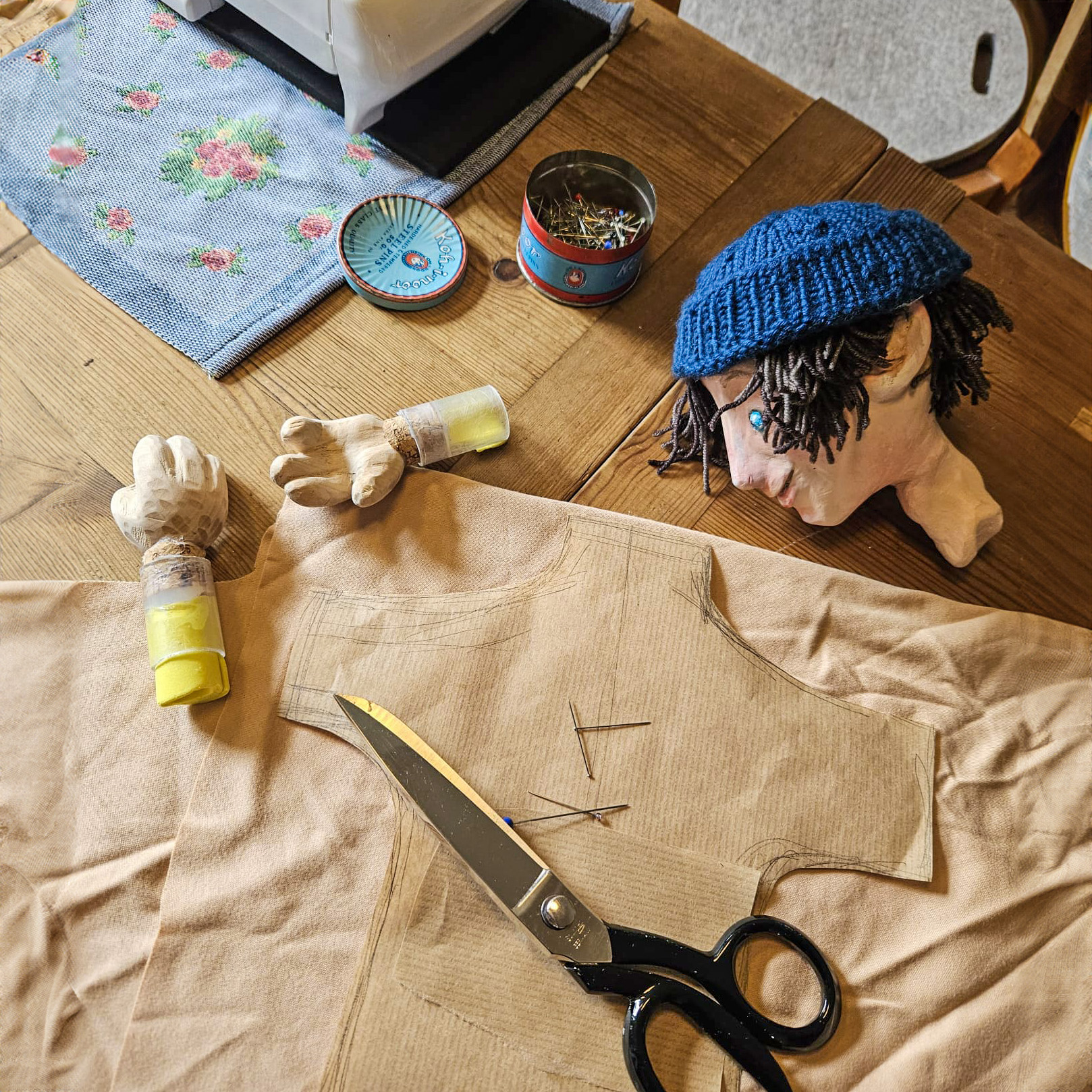 Kunstvoll wird „Tromino" zunächst als Zeichenstudie entworfen und dann in liebevoller Handarbeit von Marta Olejko sowohl als Theaterpuppe als auch als kleine Handpuppe gestaltet.