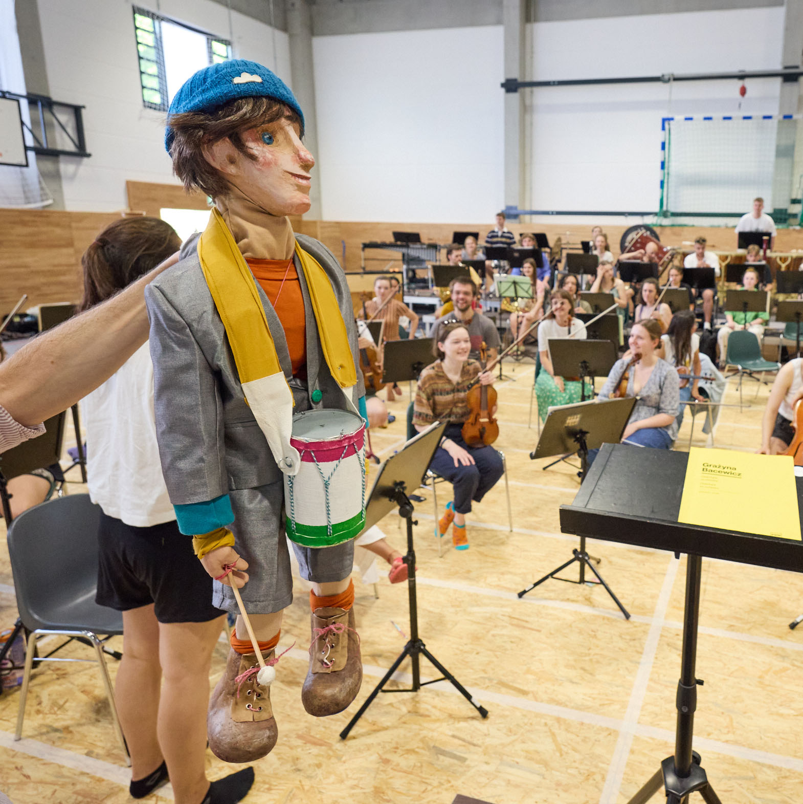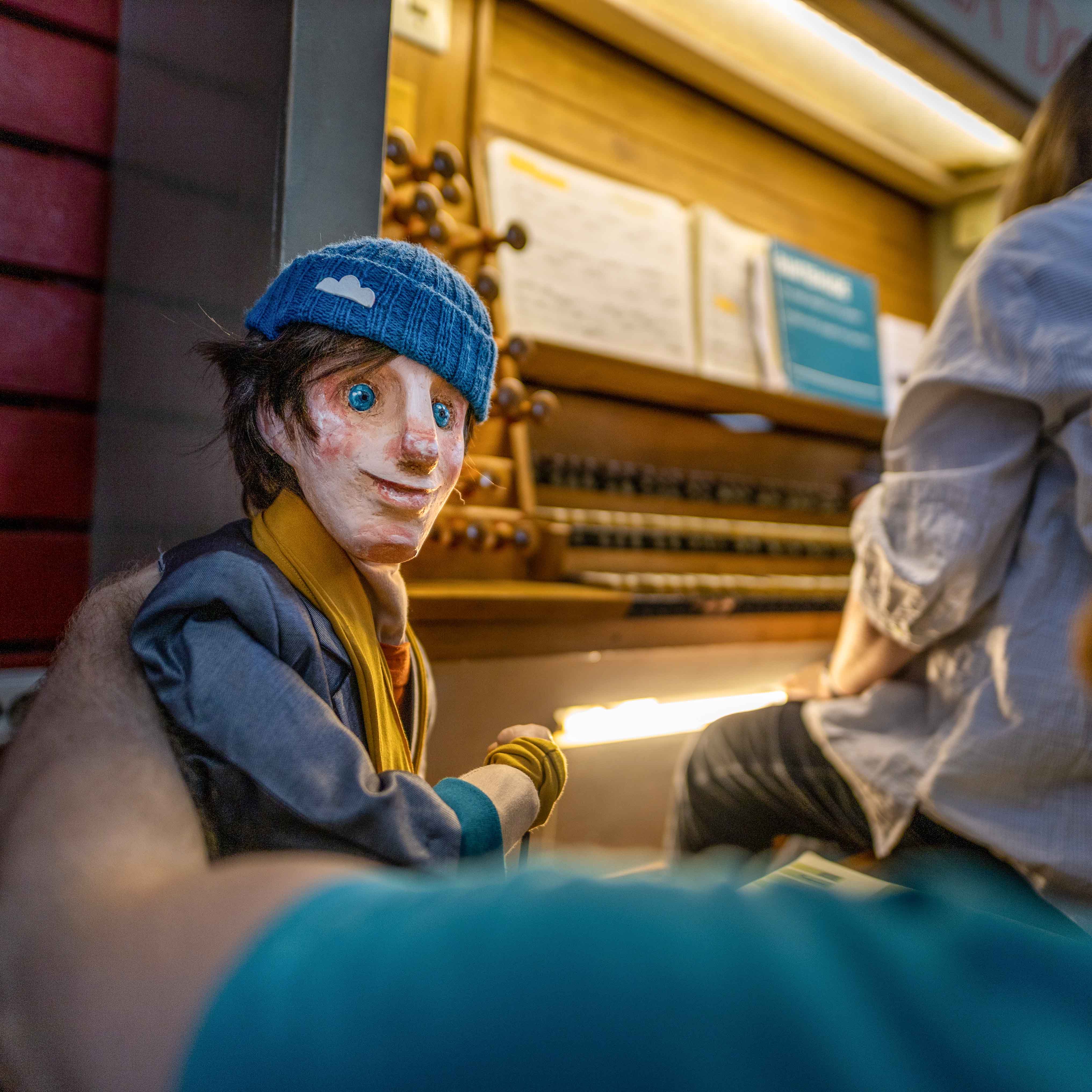 Und es gibt noch mehr Grund zur Freude: Seit dem Spätjahr 2024 hat „Tromino" einen kleinen handlichen Zwillingsbruder – eine liebevoll gestaltete Handpuppe, natürlich ebenfalls aus der Werkstatt von Marta Olejko. So kann „Tromino" nicht nur auf der großen Bühne, sondern auch in kleinen Abenteuern für zauberhafte Momente sorgen.